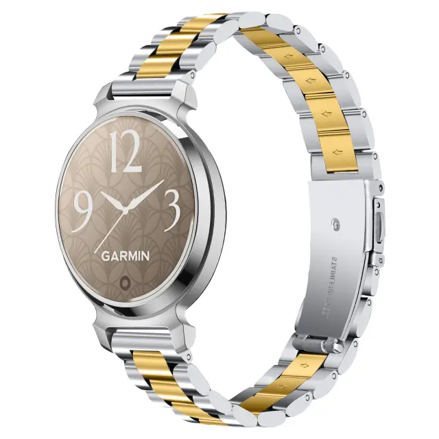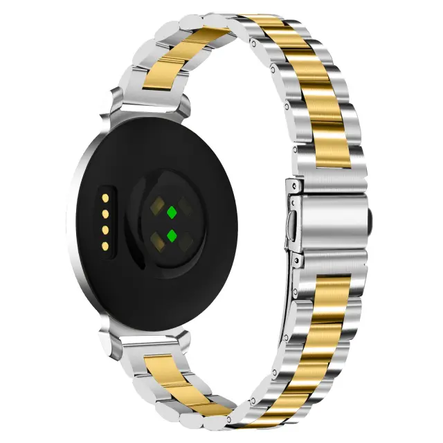 Eleganten in prefinjen dizajn: Izboljšajte svoj Garmin Lily 2 s tem prefinjenim jeklenim paščkom za uro s tremi perlami. Prefinjen dizajn se brezhibno integrira z vašo pametno uro in doda pridih elegance in sloga vsaki obleki. Ta pašček je popoln tako za vsakodnevno nošenje kot za posebne priložnosti, saj izboljša celotno estetiko vašega Garmin Lily 2. Natančno izdelani členi zagotavljajo udobno prileganje, hkrati pa izžarevajo pridih brezčasne elegance. Nadgradite svoj slog s tem vrhunskim jeklenim paščkom, združljivim z Garmin Lily 2.