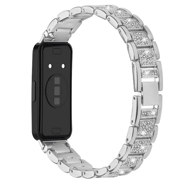 Združljiv s Huawei Band 8/9/10, tanek diamantni jekleni pašček za uro Silver