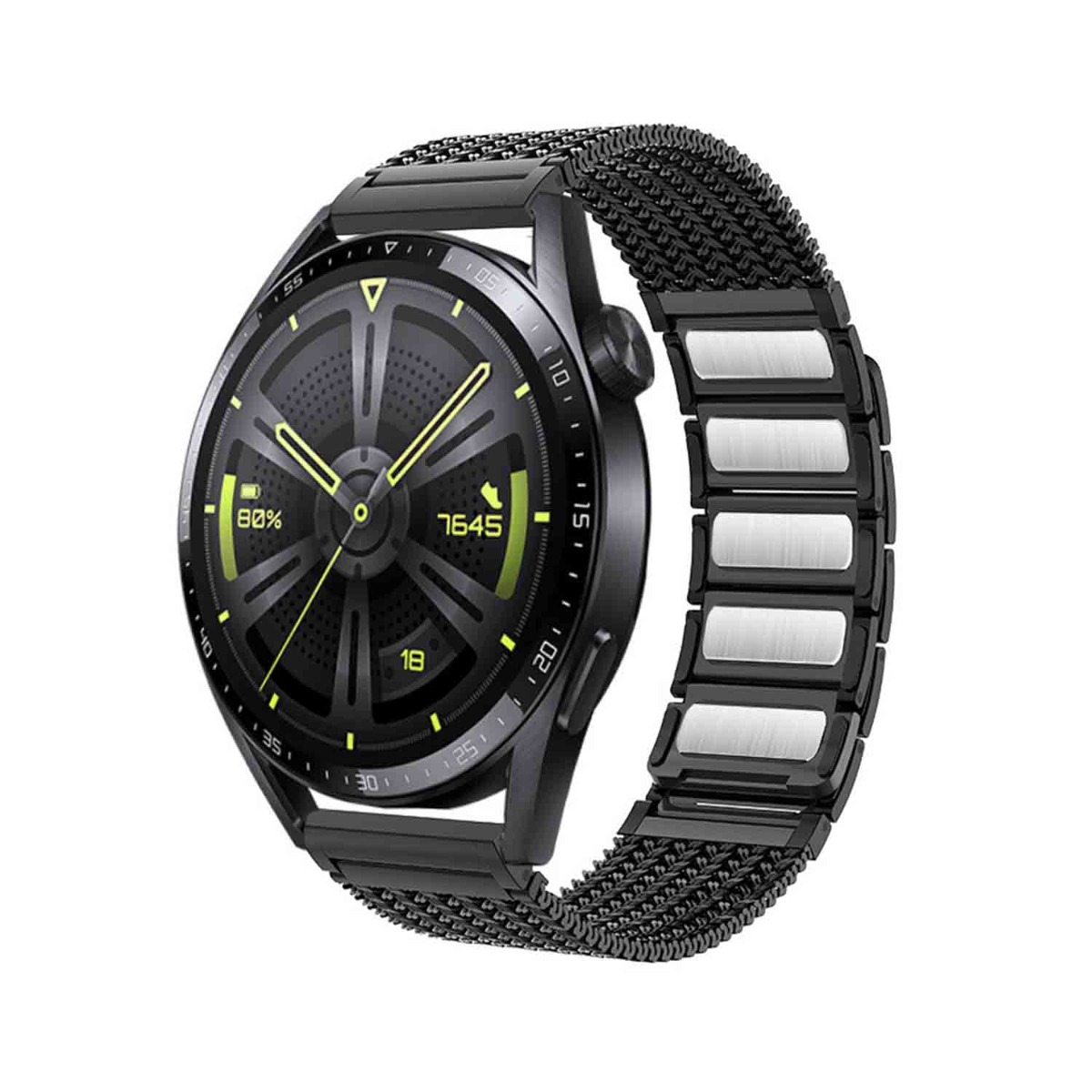 Premium Stainless Steel: Ta pas za uro, izdelan iz visokokakovostnega nerjavečega jekla, nudi izjemno odpornost proti obrabi. Material iz nerjavečega jekla zagotavlja dolgotrajen in eleganten dodatek za vašo pametno uro. Tkana zasnova povečuje prožnost in udobje pasu, zaradi česar je idealen za vsakodnevno nošenje. Titanovo siva barva doda pridih prefinjenosti in dopolnjuje široko paleto številčnic in oblačil. Ta vrhunski pas za uro iz nerjavečega jekla je združljiv s Huawei GT series, Samsung in Garmin, kar zagotavlja prefinjeno in udobno izkušnjo nošenja.