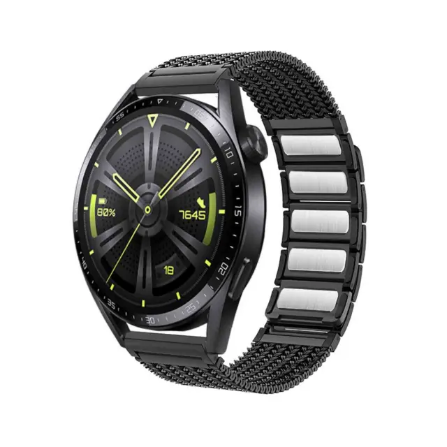 Secure Magnetic Clasp: Doživite neprimerljivo varnost z našim močnim magnetnim zapiralom. Ta inovativna zasnova zagotavlja, da vaša ura ostane trdno na mestu, kar zagotavlja brezskrbnost med katero koli aktivnostjo. Magnetno zapiranje ni samo varno, ampak tudi neverjetno priročno, saj omogoča hitre in enostavne prilagoditve. Tkana zasnova pasu prispeva k splošni moči in zanesljivosti, zaradi česar je odlična izbira za tiste, ki iščejo zanesljiv in eleganten pas za uro, združljiv s pametnimi urami Huawei GT series, Samsung in Garmin. Uživajte v mešanici varnosti in enostavnosti s tem izjemnim magnetnim pasom za uro.
