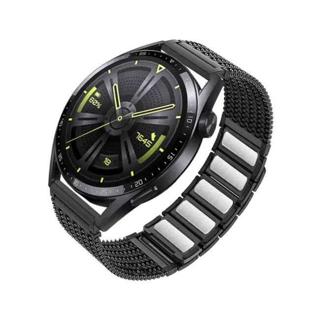 Secure Magnetic Clasp: Doživite neprimerljivo varnost z našim močnim magnetnim zapiralom. Ta inovativna zasnova zagotavlja, da vaša ura ostane trdno na mestu, kar zagotavlja brezskrbnost med katero koli aktivnostjo. Magnetno zapiranje ni samo varno, ampak tudi neverjetno priročno, saj omogoča hitre in enostavne prilagoditve. Tkana zasnova pasu prispeva k splošni moči in zanesljivosti, zaradi česar je odlična izbira za tiste, ki iščejo zanesljiv in eleganten pas za uro, združljiv s pametnimi urami Huawei GT series, Samsung in Garmin. Uživajte v mešanici varnosti in enostavnosti s tem izjemnim magnetnim pasom za uro.