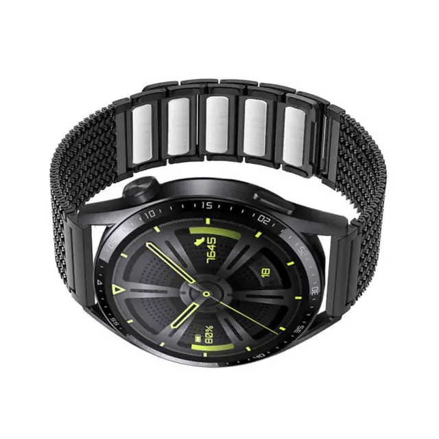 Premium Stainless Steel: Ta pas za uro, izdelan iz visokokakovostnega nerjavečega jekla, nudi izjemno odpornost proti obrabi. Material iz nerjavečega jekla zagotavlja dolgotrajen in eleganten dodatek za vašo pametno uro. Tkana zasnova povečuje prožnost in udobje pasu, zaradi česar je idealen za vsakodnevno nošenje. Titanovo siva barva doda pridih prefinjenosti in dopolnjuje široko paleto številčnic in oblačil. Ta vrhunski pas za uro iz nerjavečega jekla je združljiv s Huawei GT series, Samsung in Garmin, kar zagotavlja prefinjeno in udobno izkušnjo nošenja.