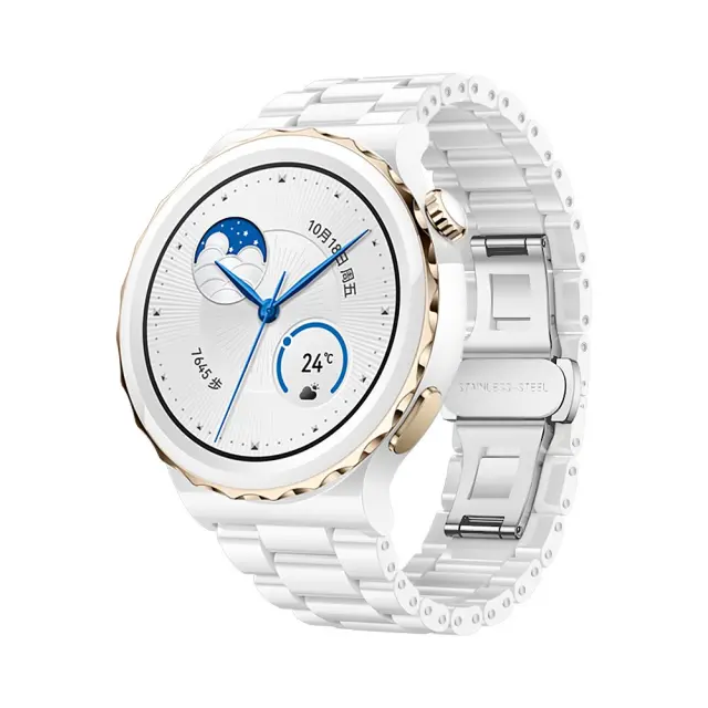 Premium Materials: Izdelan iz visokokakovostne keramike in nerjavečega jekla, ta pašček, združljiv s Huawei GT4/Buds Pro, ponuja prefinjen videz in občutek. Kombinacija teh materialov zagotavlja udobno prileganje in dolgotrajen sijaj. Gladki keramični členi zagotavljajo nežen dotik na koži, medtem ko komponente iz nerjavečega jekla nudijo trdnost in odpornost proti obrabi. Ta vrhunska konstrukcija dviguje slog vaše pametne ure, zaradi česar je primerna za priložnostne in formalne priložnosti. Materiali so skrbno izbrani, da zagotavljajo ravnovesje med eleganco in odpornostjo, kar zagotavlja, da vaš pašček ostane eleganten dodatek leta.