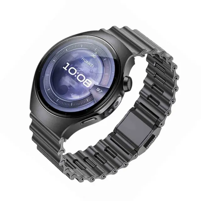 Vrhunsko nerjaveče jeklo: Ta pašček za uro, izdelan iz visokokakovostnega nerjavečega jekla, ponuja eleganten in prefinjen videz. Robusten material je odporen na praske in obrabo, kar zagotavlja, da vaš pašček sčasoma ohrani svoj prvotni videz. Konstrukcija iz nerjavečega jekla zagotavlja udoben občutek na zapestju, zaradi česar je idealen za celodnevno nošenje. Ta pašček, združljiv s pametnimi urami Huawei Watch 5, GT6, GT5, Pro, 4 in Samsung, je popolna mešanica elegance in odpornosti.