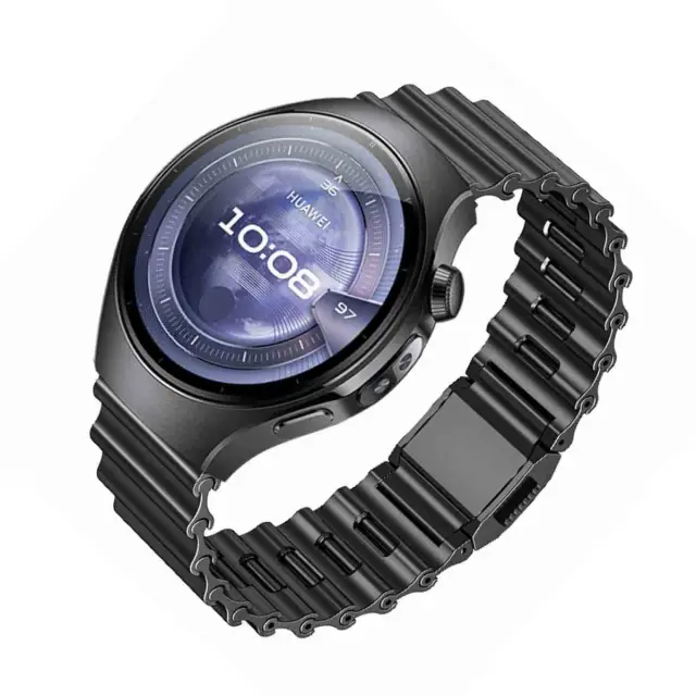 Vrhunsko nerjaveče jeklo: Ta pašček za uro, izdelan iz visokokakovostnega nerjavečega jekla, ponuja eleganten in prefinjen videz. Robusten material je odporen na praske in obrabo, kar zagotavlja, da vaš pašček sčasoma ohrani svoj prvotni videz. Konstrukcija iz nerjavečega jekla zagotavlja udoben občutek na zapestju, zaradi česar je idealen za celodnevno nošenje. Ta pašček, združljiv s pametnimi urami Huawei Watch 5, GT6, GT5, Pro, 4 in Samsung, je popolna mešanica elegance in odpornosti.
