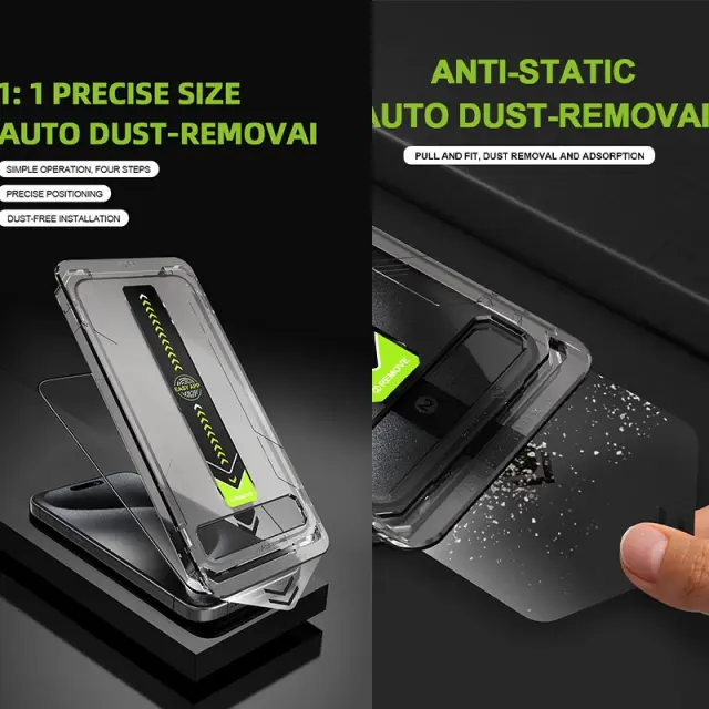 Enostavna namestitev brez mehurčkov: Priložena komora brez prahu in alkoholni robček omogočata enostavno namestitev. Ta zaščita zaslona, združljiva z iPhone 17 Pro Max, ima samolepilno zasnovo, ki zagotavlja nanos brez mehurčkov. Preprosto očistite zaslon s priloženim alkoholnim robčkom, poravnajte zaščito s pomočjo komore brez prahu in jo nanesite. Natančni izrezi in gladki robovi zagotavljajo popolno prileganje in brezhibno integracijo z vašo napravo. Uživajte v postopku namestitve brez težav in takojšnji zaščiti za vaš iPhone 17 Pro Max. Uporabniku prijazna zasnova omogoča, da vsakdo hitro in enostavno namesti zaščito zaslona, brez posebnih orodij ali veščin. Zagotavlja popolno pokritost in zaščito od roba do roba.