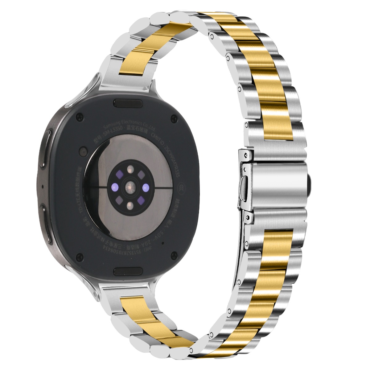 Združljiv s Samsung Galaxy Watch 8/8 Classic tanek jeklen pašček s tremi perlami silver+gold