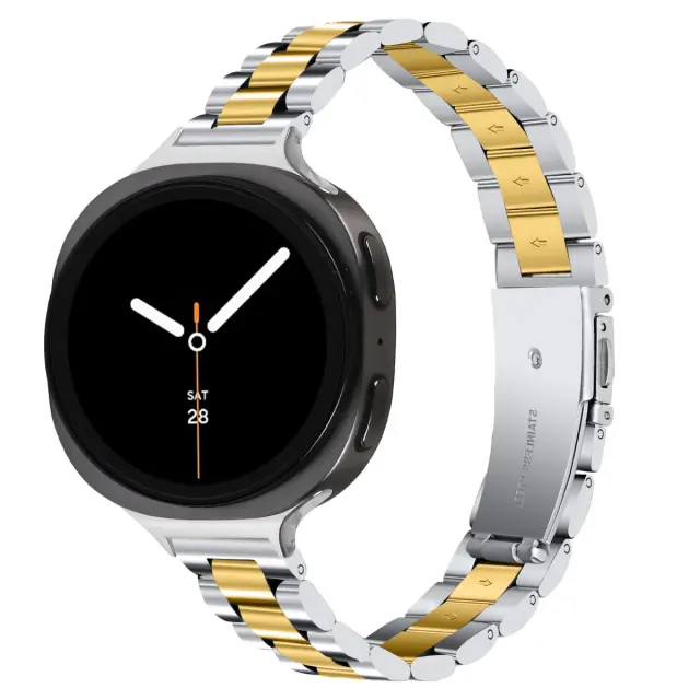 Eleganten tanek dizajn: Ta tanek jeklen pašček s tremi perlami ponuja prefinjen in eleganten videz za vašo uro Samsung Galaxy Watch 8 ali 8 Classic. Zasnova je popolna za tiste, ki imajo raje bolj nežen in ženstven videz, ki izboljša celoten videz vaše pametne ure. Njegov tanek profil zagotavlja udobno prileganje, hkrati pa doda pridih elegance vaši zapestju. Pašček je natančno izdelan, da dopolnjuje elegantno obliko ure Samsung Galaxy Watch 8/8 Classic, zaradi česar je idealen dodatek za vsako priložnost, od priložnostnih izletov do formalnih dogodkov. Tanka zasnova ne ogroža moči, saj zagotavlja varen in eleganten način nošenja vaše pametne ure.