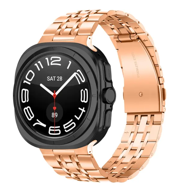 Združljiv s Samsung Galaxy Watch 8 Integrirana jeklena zapestnica s sedmimi kroglicami PinkGold