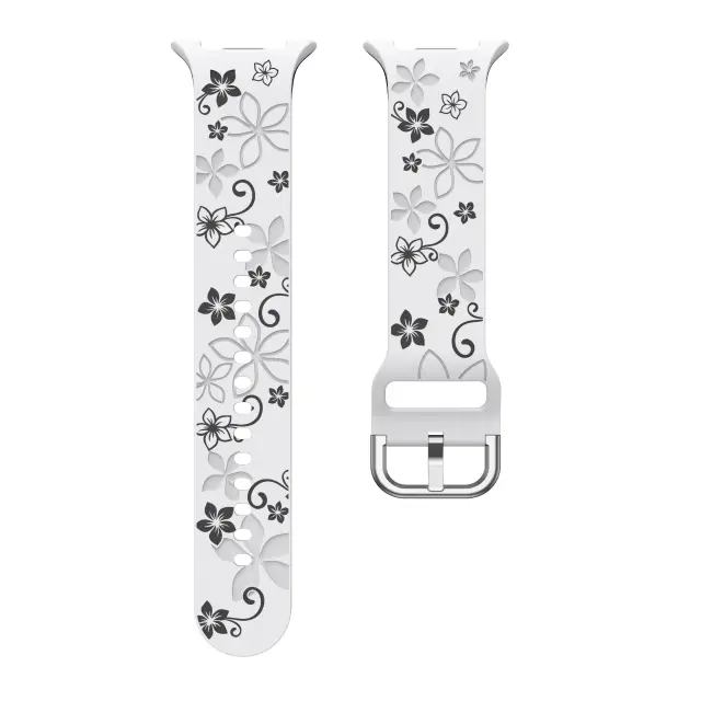Združljiv s Samsung Galaxy Watch8 22 mm silikonski pašček z gravuro White+Black
