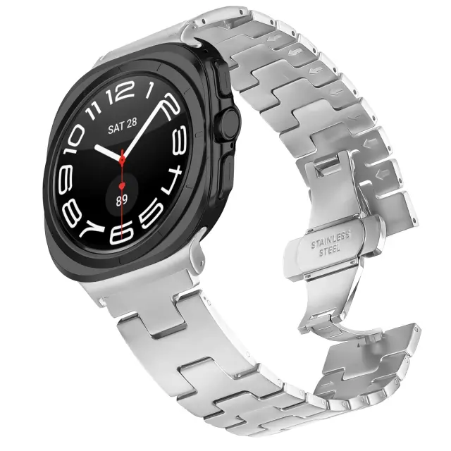 Eleganten in vzdržljiv: Ta jekleni pas z metuljčkom je zasnovan za Samsung Galaxy Watch8 in združuje eleganco in vzdržljivost. Izdelan iz visokokakovostnega nerjavečega jekla, zagotavlja dolgotrajno uporabo in odpornost proti koroziji. Njegova gladka površina in natančna izdelava zagotavljata udobno nošenje in prefinjen videz. Predstavljajte si, kako se ta pas popolnoma prilega vašemu zapestju, poudarja vašo osebnost in dodaja pridih elegance vsakemu vašemu gibu.