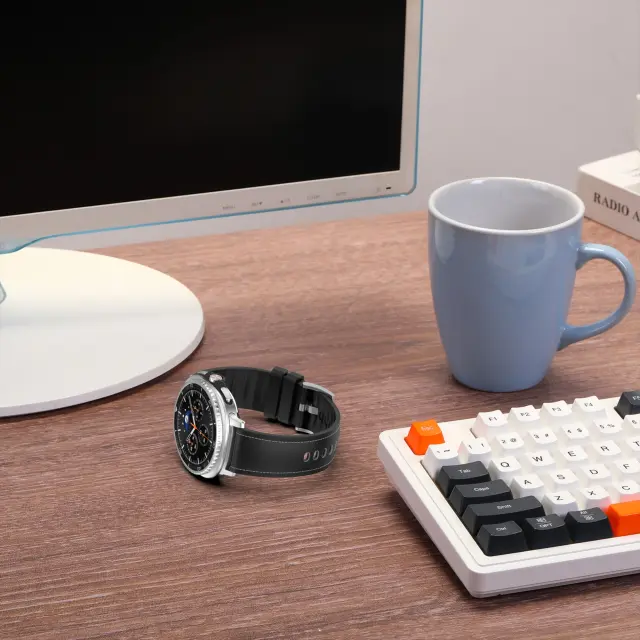 Združljiv s Samsung Galaxy Watch8 Silikonski usnjen pašček - Eleganten nadomestni pas Black