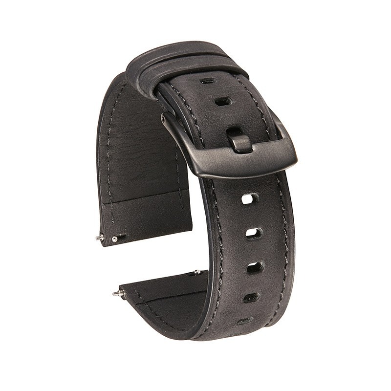 Združljiv s Samsung in Huawei Quick Release Usnjeni Pas za Pametno Uro Black 22 mm
