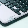 Prenosljivost in dolga življenjska doba: Zaradi tanke in lahke zasnove je ta etui s tipkovnico in miško enostaven za prenašanje. Ne glede na to, ali ste študent, poslovnež ali ustvarjalec vsebine, lahko ta etui vzamete s seboj kamorkoli greste. Dolga življenjska doba baterije zagotavlja, da lahko tipkovnico in miško uporabljate več ur brez potrebe po polnjenju. Ko je baterija prazna, jo lahko enostavno napolnite s priloženim kablom USB.