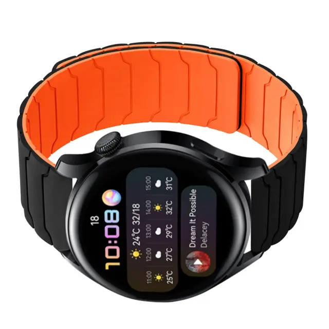 Združljiv s Samsung Watch 5/6/7, Huawei GT3/4/5, Amazfit - 20/22mm silikonski magnetni pašček za uro Black Orange 22 mm