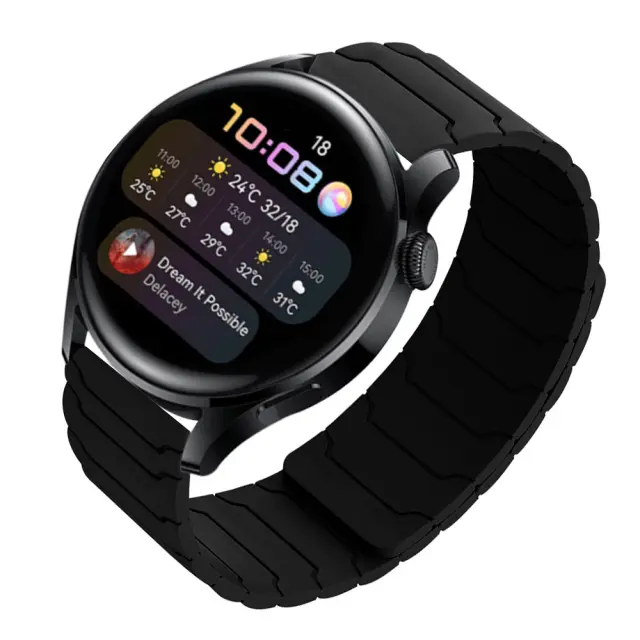 Združljiv s Samsung Watch 5/6/7, Huawei GT3/4/5, Amazfit - 20/22mm silikonski magnetni pašček za uro Black 20 mm