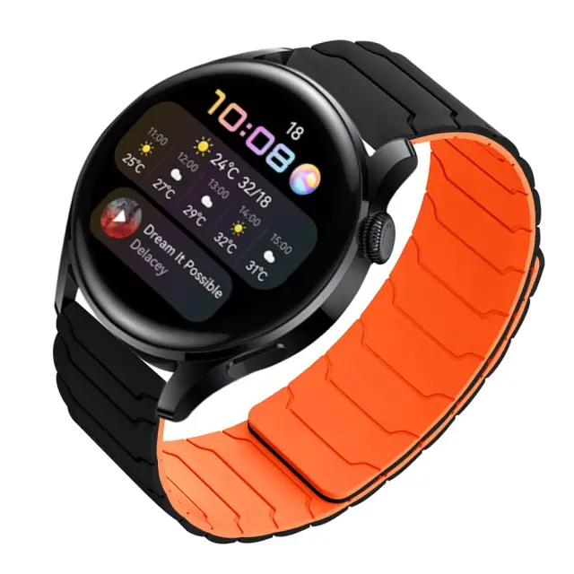 Združljiv s Samsung Watch 5/6/7, Huawei GT3/4/5, Amazfit - 20/22mm silikonski magnetni pašček za uro Black Orange 20 mm
