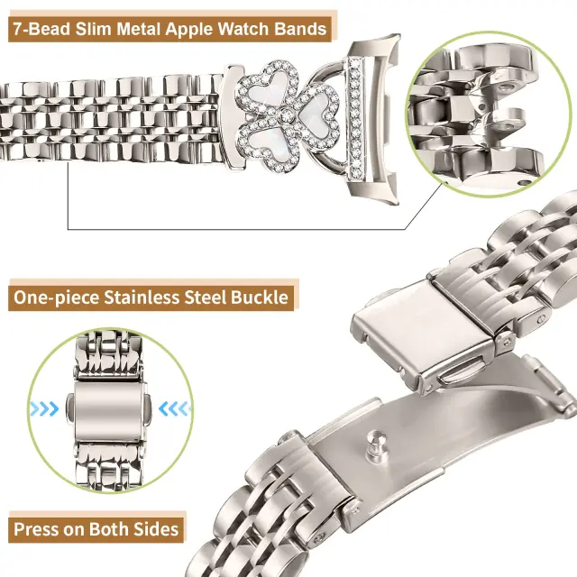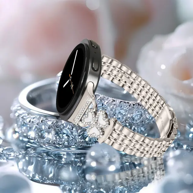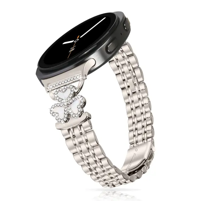 Združljiv s Samsung Watch 8/8 Classic jermen iz nerjavečega jekla s srčasto deteljico in sedmimi kroglicami