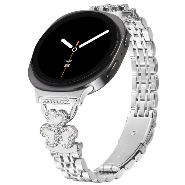 Eleganten dizajn in stil: Izboljšajte svojo uro Samsung Watch8/8 Classic s tem izvrstno oblikovanim jeklenim paščkom za uro. Okras s srčasto deteljico doda pridih prefinjenosti in šarma, zaradi česar je popoln dodatek za vsako priložnost. Zapletene podrobnosti in poliran zaključek poudarjajo celotno estetiko, kar zagotavlja, da vaša pametna ura izstopa. Ta pašček brezhibno združuje modo in funkcionalnost ter zagotavlja udobno in elegantno nošenje. Edinstven dizajn bo zagotovo pritegnil pozornost in dopolnil vaš osebni slog, zaradi česar je idealna izbira za tiste, ki cenijo fino izdelavo in pozornost do detajlov. To je več kot le pašček za uro; je izrazni kos.