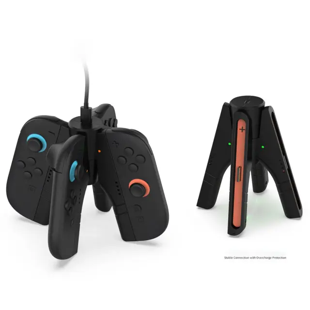 Učinkovito polnjenje štirih krmilnikov: Polnilna postaja omogoča hkratno polnjenje do štirih krmilnikov Switch2, kar zagotavlja, da so vaši krmilniki vedno pripravljeni za igro. To je idealno za družine ali igralce, ki pogosto igrajo igre za več igralcev. S to postajo se izognete čakanju in zagotovite neprekinjeno igralno izkušnjo.