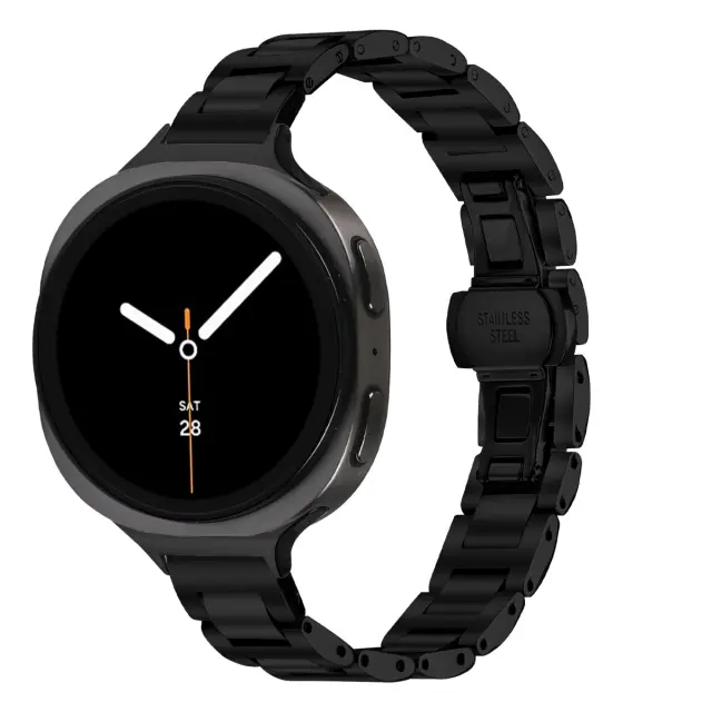 Varna zaponka z metuljčkom: Zaponka z metuljčkom na tem kovinskem paščku iz nerjavečega jekla, združljiva z Watch8 in Watch8 Classic, zagotavlja varno in brezšivno zapiranje. Ta vrsta zaponke je znana po enostavni uporabi in čistem videzu, saj skriva mehanizem zaponke pod paščkom. Preprečuje nenamerno odpiranje in zagotavlja, da vaša ura ostane varno na zapestju ves dan. Zaponka z metuljčkom prispeva tudi k poenostavljeni obliki paščkov, zaradi česar je elegantna in praktična izbira za vašo pametno uro. Uživajte v miru, saj veste, da je vaša ura varno in udobno pritrjena.