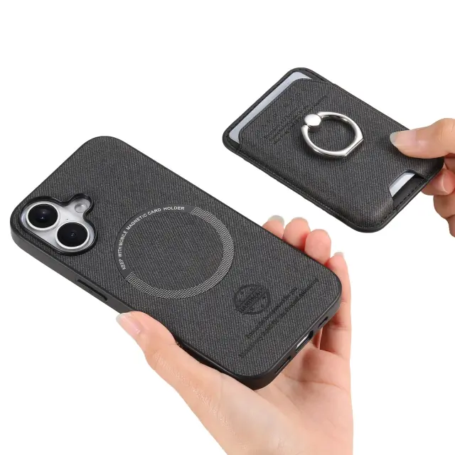 Priročnost in eleganca v enem: Poleg zaščite in funkcionalnosti ohišje ponuja tudi eleganten videz. Črna barva in tekstura proti drsenju zagotavljata prefinjen videz, ki se prilega vsakemu stilu. Magnetno ločljiv žep za kartice omogoča prilagajanje glede na vaše potrebe, ne glede na to, ali potrebujete hiter dostop do kartic ali želite ohraniti tanek profil telefona. Prstan na hrbtni strani dodaja dodatno funkcionalnost in omogoča enostavno uporabo telefona z eno roko.