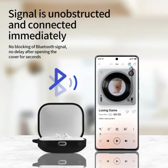 Združljiv silikonski etui za Redmi Buds 6 Active s sponko - črn