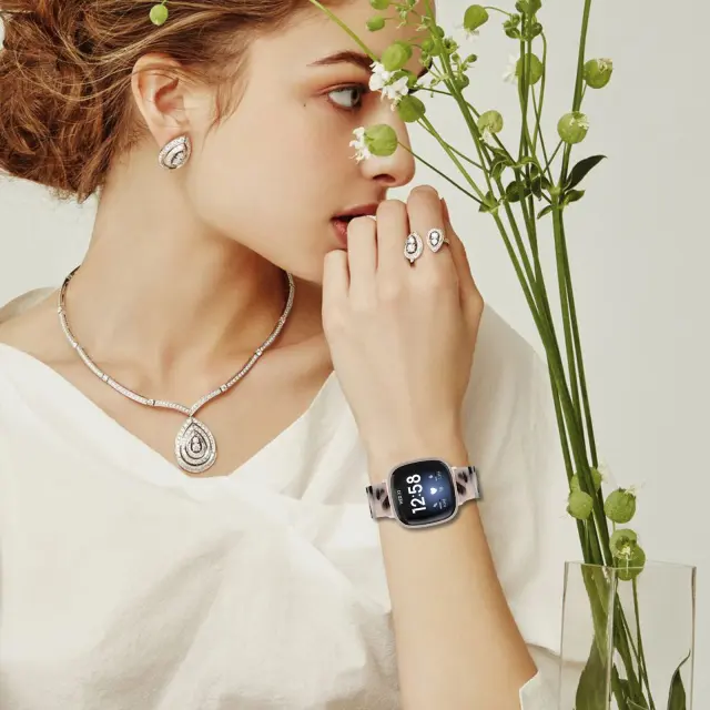 Združljiv smolni pašček za uro Fitbit Versa 3/4/Sense 2 - eleganten, vodoodporen in nastavljiv White+Black