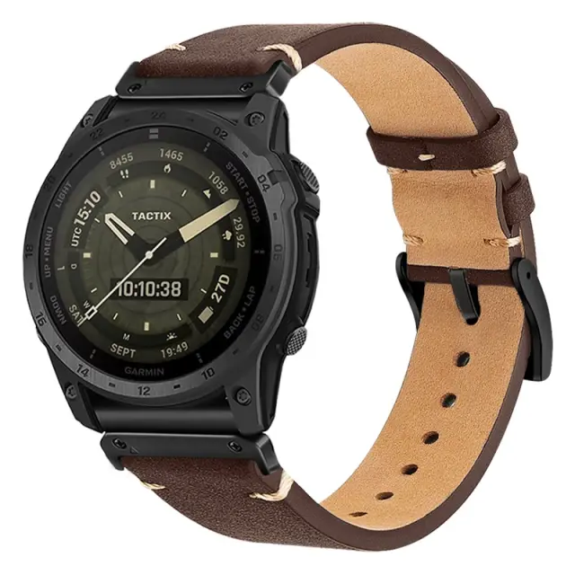 Izjemna kakovost: Naš usnjen pašček za uro je izdelan iz vrhunskega telečjega usnja, kar zagotavlja izjemno kakovost in dolgo življenjsko dobo. Usnje je skrbno izbrano zaradi svoje moči, prožnosti in naravne lepote. Vodoodporna podloga zagotavlja dodatno zaščito pred vlago in znojem, kar podaljšuje življenjsko dobo paščku. Pašček je zasnovan tako, da prenese vsakodnevno obrabo, pri čemer ohranja svojo obliko in videz skozi čas. Ta pašček je vredna naložba za tiste, ki zahtevajo najboljše v smislu kakovosti in zmogljivosti. Ponuja kombinacijo sloga, udobja in, ki bo prestala preizkus časa. Združljiv s serijo Garmin Fenix.