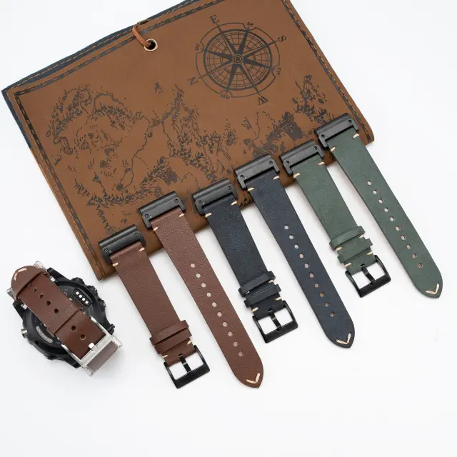 Združljiv usnjen pašček za uro Premium za Garmin Fenix 8/7X/3 Black 22 mm