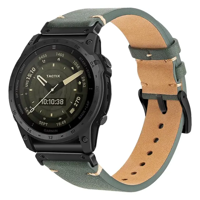 Združljiv usnjen pašček za uro Premium za Garmin Fenix 8/7X/3 Green 20 mm