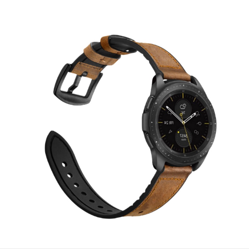 Združljiv usnjen silikonski hibridni retro pašček za uro Huawei GT2/GT3 Brown 22 mm