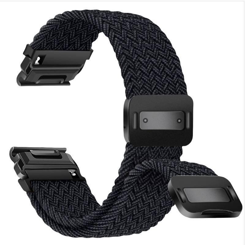 Združljiv z Garmin Fenix Series Quick Release Magnetic Sponka Elastičen Najlon Pleten Pas Black 20 mm