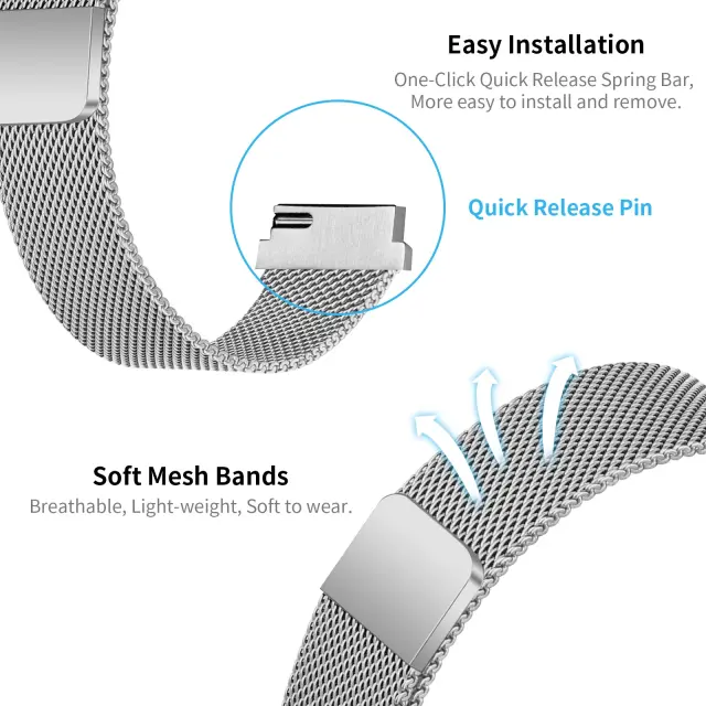 Vrhunsko udobje in prileganje: Uživajte v neprimerljivem udobju s to milansko zanko, natančno zasnovano za Garmin Lily 2. Prilagodljiva mreža iz nerjavečega jekla se brezhibno prilega vaši zapestju, kar odpravlja ščipanje ali nelagodje. Popolnoma magnetna zaponka omogoča neskončno prilagajanje, kar zagotavlja popolno in varno prileganje za katero koli velikost zapestja. Za razliko od tradicionalnih zapestnic z fiksnimi luknjami, ta milanska zapestnica ponuja prilagojeno prileganje, ki se prilagaja vašim gibom skozi ves dan. Lahka zasnova preprečuje zajetnost, zaradi česar je idealna za dolgotrajno nošenje med vadbo, vsakodnevnimi aktivnostmi ali celo spanjem. Izkusite vrhunsko udobje in priročnost s to premišljeno zasnovano zapestnico, združljivo z Garmin Lily 2.