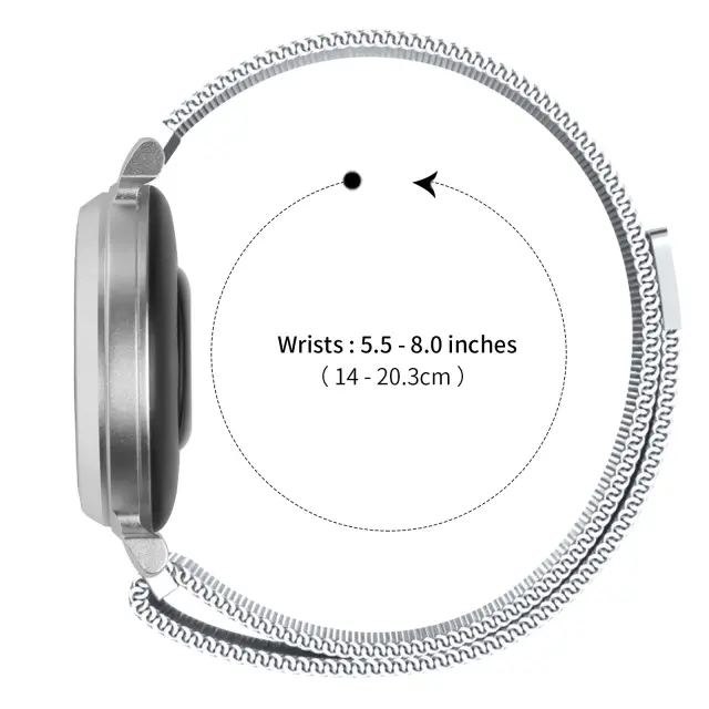 Varno magnetno zapiranje: Močno magnetno zapiranje te milanske zapestnice zagotavlja zanesljivo in varno prileganje za vaš Garmin Lily 2. Močan magnet zagotavlja, da zapestnica ostane trdno na mestu, tudi med intenzivnimi aktivnostmi. Magnetno zaponko je enostavno prilagoditi, kar vam omogoča, da hitro zategnete ali popustite zapestnico po potrebi. Ta inovativni sistem zapiranja odpravlja potrebo po zaponkah ali sponkah, kar zagotavlja poenostavljeno in udobno izkušnjo nošenja. Gladka magnetna površina preprečuje zatikanje za oblačila ali kožo, kar zagotavlja izkušnjo brez težav. Uživajte v brezskrbnosti, saj veste, da je vaš Garmin Lily 2 varno pritrjen na vaše zapestje s tem zanesljivim sistemom magnetnega zapiranja.