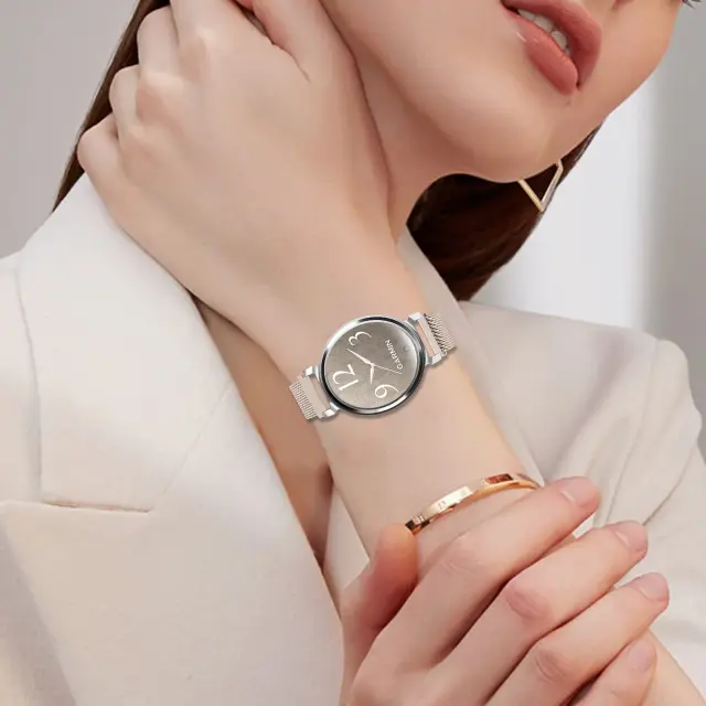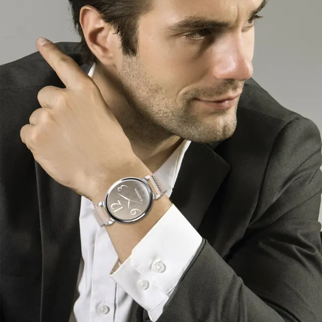 Varno magnetno zapiranje: Močno magnetno zapiranje te milanske zapestnice zagotavlja zanesljivo in varno prileganje za vaš Garmin Lily 2. Močan magnet zagotavlja, da zapestnica ostane trdno na mestu, tudi med intenzivnimi aktivnostmi. Magnetno zaponko je enostavno prilagoditi, kar vam omogoča, da hitro zategnete ali popustite zapestnico po potrebi. Ta inovativni sistem zapiranja odpravlja potrebo po zaponkah ali sponkah, kar zagotavlja poenostavljeno in udobno izkušnjo nošenja. Gladka magnetna površina preprečuje zatikanje za oblačila ali kožo, kar zagotavlja izkušnjo brez težav. Uživajte v brezskrbnosti, saj veste, da je vaš Garmin Lily 2 varno pritrjen na vaše zapestje s tem zanesljivim sistemom magnetnega zapiranja.
