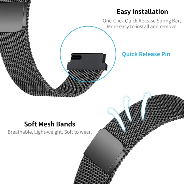 Vrhunsko udobje in prileganje: Uživajte v neprimerljivem udobju s to milansko zanko, natančno zasnovano za Garmin Lily 2. Prilagodljiva mreža iz nerjavečega jekla se brezhibno prilega vaši zapestju, kar odpravlja ščipanje ali nelagodje. Popolnoma magnetna zaponka omogoča neskončno prilagajanje, kar zagotavlja popolno in varno prileganje za katero koli velikost zapestja. Za razliko od tradicionalnih zapestnic z fiksnimi luknjami, ta milanska zapestnica ponuja prilagojeno prileganje, ki se prilagaja vašim gibom skozi ves dan. Lahka zasnova preprečuje zajetnost, zaradi česar je idealna za dolgotrajno nošenje med vadbo, vsakodnevnimi aktivnostmi ali celo spanjem. Izkusite vrhunsko udobje in priročnost s to premišljeno zasnovano zapestnico, združljivo z Garmin Lily 2.