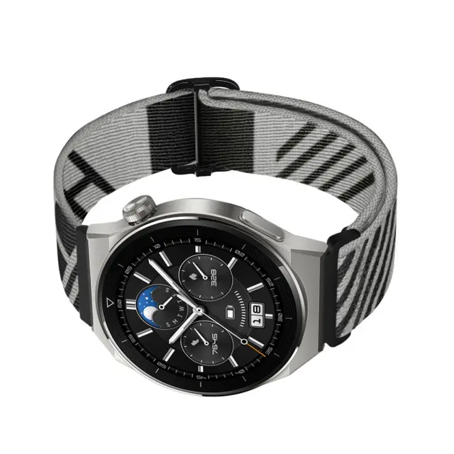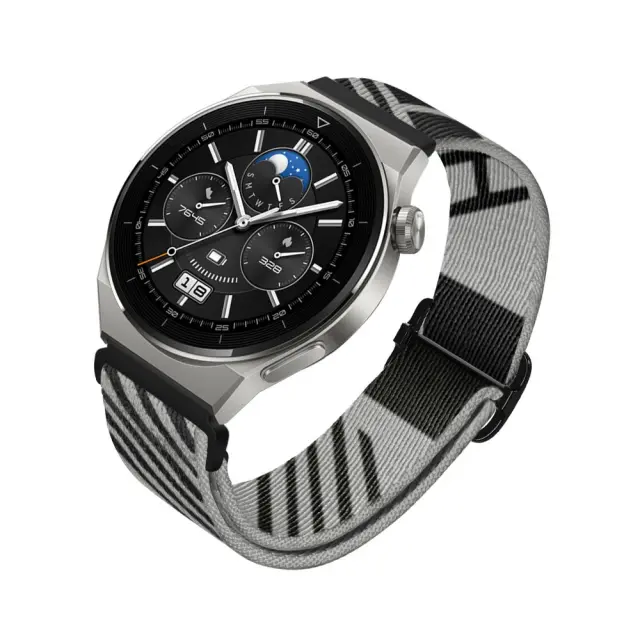 Združljiv z Huawei GT3 Pro/Buds nastavljiv najlonski pleten elastičen pašček Grey+Black 20 mm