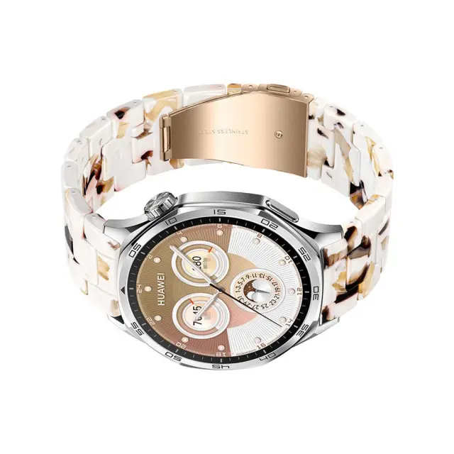 Eleganten in stilski: Izboljšajte svoj Huawei GT5 Pro ali Samsung Galaxy Watch s tem osupljivim paščkom za uro iz smole in nerjavečega jekla. Edinstvena zasnova s tremi perlami ponuja prefinjen in moderen videz, ki je popoln za vsako priložnost. Kombinacija smole in nerjavečega jekla zagotavlja udoben in lahek občutek, zaradi česar je idealen za vsakodnevno nošenje. Ta pašček ni le modna izjava, ampak tudi praktičen dodatek, ki izboljša celotno estetiko vaše pametne ure. Njegova privlačna oblika zagotavlja, da boste izstopali iz množice in dodali osebni pridih vaši zapestnici. Združljiv z urami Huawei in Samsung.