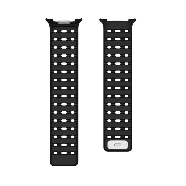 Izboljšana zračnost in udobje: Prosimo, upoštevajte: to niso originalni deli. Izkusite vrhunsko udobje z zračno zasnovo tega silikonskega paščka. Prezračevalne luknje omogočajo optimalen pretok zraka, preprečujejo nabiranje znoja in ohranjajo vaše zapestje hladno in suho, tudi med intenzivnimi vadbami ali v vročem vremenu. Ta funkcija je idealna za aktivne posameznike in tiste, ki jim je udobje prioriteta skozi ves dan. Zračna zasnova zagotavlja, da lahko udobno nosite združljiv pašček Samsung Galaxy Watch dalj časa, brez draženja ali nelagodja. Uživajte v svežem in udobnem občutku ves dan s to inovativno zasnovo.