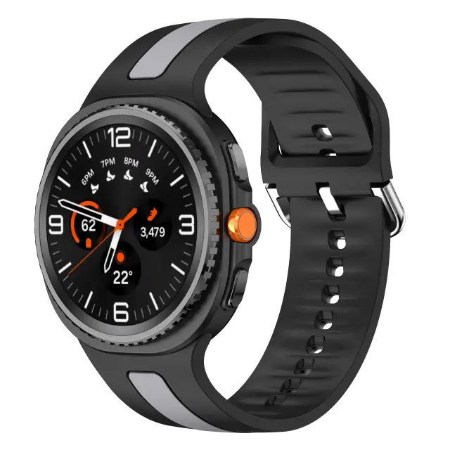 Združljiv z Samsung Watch 8 & Watch 8 Classic silikonski pašček z navpičnimi črtami Black+Grey