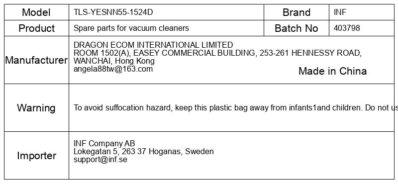 Da bi se izognili nevarnosti zadušitve, hranite to plastično vrečko izven dosega dojenčkov in otrok. Te vrečke ne uporabljajte v otroških posteljicah, posteljah, vozičkih ali stajicah. Ta vrečka ni igrača.