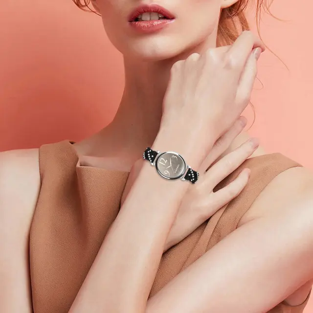 Eleganten dizajn: Povzdignite svojo pametno uro Garmin Lily 2 s to izvrstno zapestnico s srcem in diamanti. Zapleten dizajn doda pridih prefinjenosti in glamurja vaši zapestju, zaradi česar je popolna za vsakodnevno nošenje in posebne priložnosti. Bleščeči diamanti lepo lovijo svetlobo in izboljšajo splošno estetsko privlačnost vaše ure Garmin Lily 2. Ta zapestnica je več kot le pašček za uro; je izrazni kos, ki odraža vaš osebni slog in pozornost do detajlov. Brezhibno združuje modo in funkcionalnost ter zagotavlja, da je vaša ura Garmin Lily 2 videti tako dobro, kot deluje. Poudarki v obliki srca dodajo romantičen pridih, zaradi česar je idealno darilo za ljubljene.
