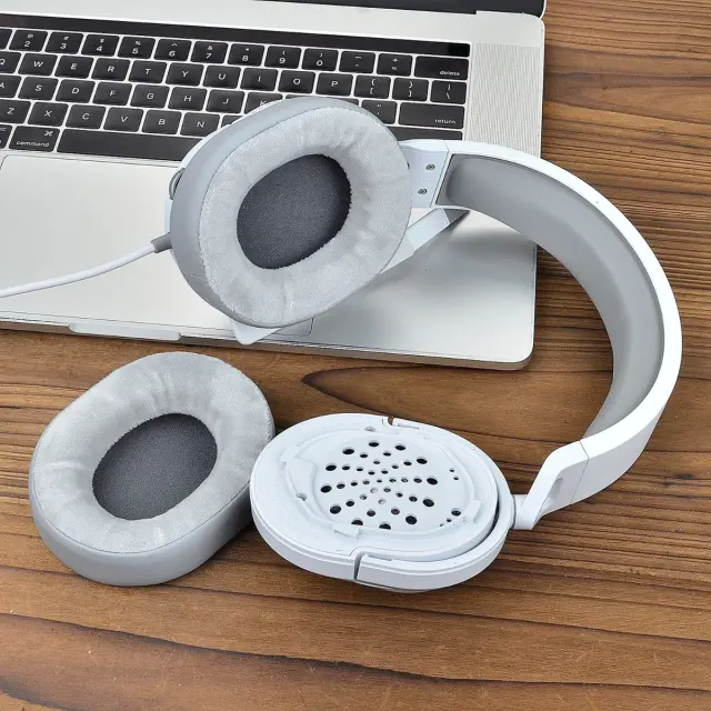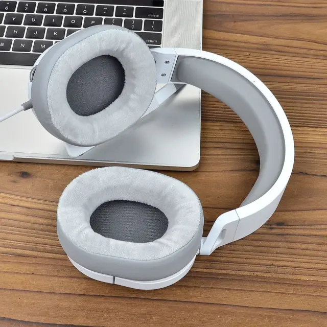 Združljivi 2 kosa sivih usnjenih in žametnih ušesnih blazinic za Corsair HS55 HS65