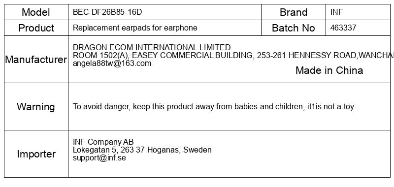 Da bi se izognili nevarnosti, izdelek hranite izven dosega dojenčkov in otrok, saj ni igrača.