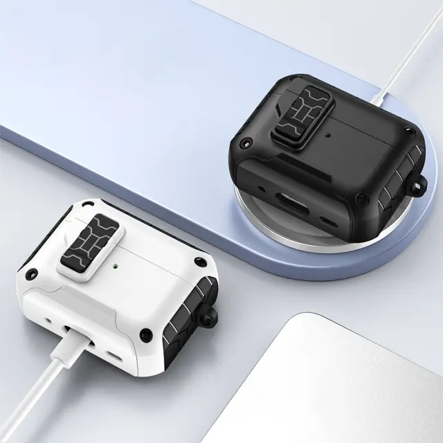 Združljivo ohišje za AirPods 4 - TPU+PC, magnetno zapiranje, podpora za brezžično polnjenje, s karabinom
