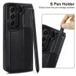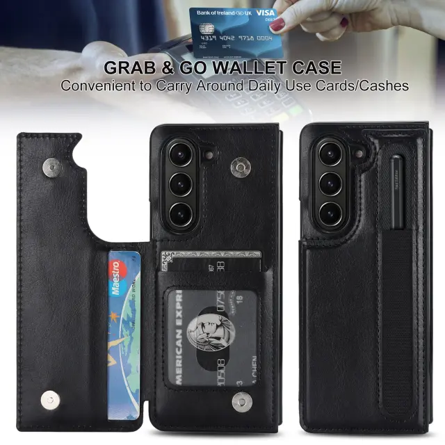 Priročne funkcije: Prosimo, upoštevajte: to niso originalni deli. Zasnova z dvojnim trakom ne le dodaja eleganten pridih, temveč tudi zagotavlja varen oprijem, kar zmanjšuje tveganje nenamernih padcev. Integrirana reža za pisalo vam omogoča priročno shranjevanje pisala S Pen, kar zagotavlja, da je vedno na dosegu roke, ko ga potrebujete. Vgrajeno držalo za kartice omogoča priročen način za prenašanje vaših osnovnih kartic, kar odpravlja potrebo po ločeni denarnici. Zložljiva zasnova vam omogoča enostavno podpiranje vašega Samsung Z Fold 3 za prostoročno gledanje, zaradi česar je popoln za gledanje videoposnetkov ali video konference. To ohišje združuje slog in funkcionalnost za vrhunsko uporabniško izkušnjo.