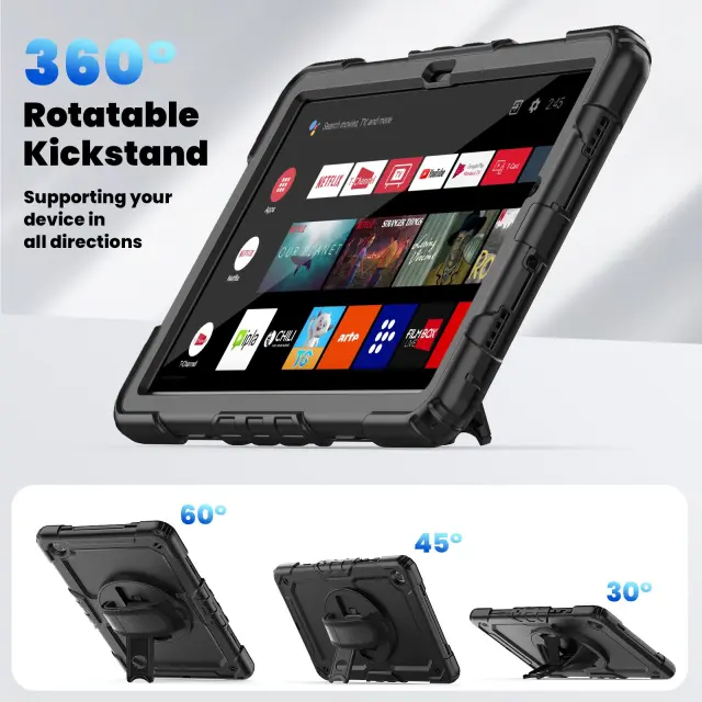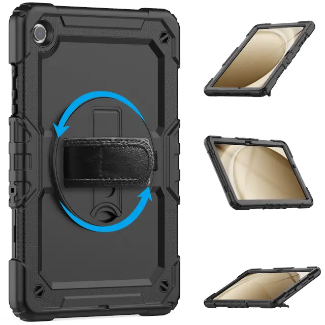 Izboljšan oprijem in prenosljivost: Integriran ročni pas zagotavlja varen in udoben oprijem, kar znatno zmanjšuje tveganje nenamernih padcev in hkrati izboljšuje prenosljivost. Ta funkcija je še posebej uporabna za uporabnike, ki pogosto uporabljajo tablični računalnik na poti, bodisi med vožnjo v službo, potovanjem ali preprosto premikanjem po hiši. Pas omogoča upravljanje z eno roko, pri čemer je druga roka prosta za druge naloge. Ročni pas je nastavljiv, da ustreza različnim velikostim rok, kar zagotavlja tesno in varno prileganje za vsakogar. Ta zasnova spodbuja samozavestno rokovanje in zmanjšuje možnosti poškodb zaradi zdrsov in padcev, zaradi česar je idealen dodatek za aktivne uporabnike in družine z otroki. Ročni pas je izdelan iz visokokakovostnih materialov za dolgotrajno udobje in zanesljivost, kar zagotavlja, da lahko prenese vsakodnevno uporabo in zagotavlja dosledno podporo.