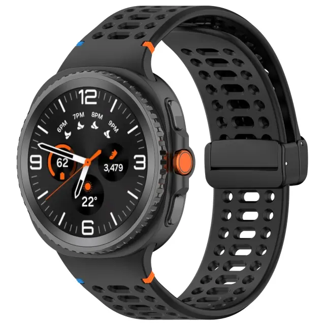 Združljivost s Samsung Watch 8/8 Classic: Magnetni silikonski pašček z luknjami Black