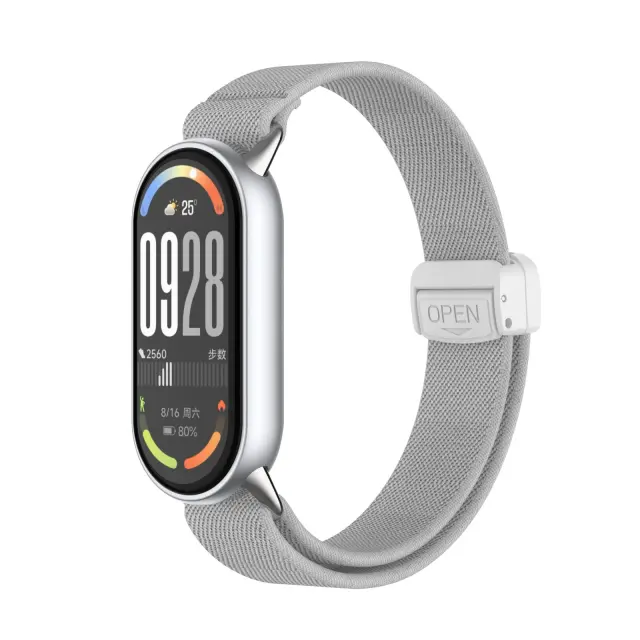 Združljivost s Xiaomi 10/9/8: Magnetna pletena elastična zapestnica s kovinsko glavo LightGrey